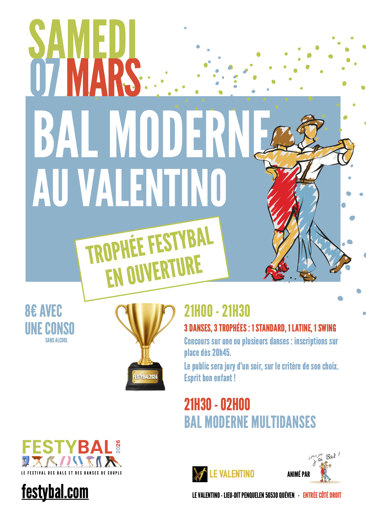 7 mars 2026 dès 21h : TROPHÉE FESTYBAL en ouverture du Bal moderne au Valentino, 56 Quéven